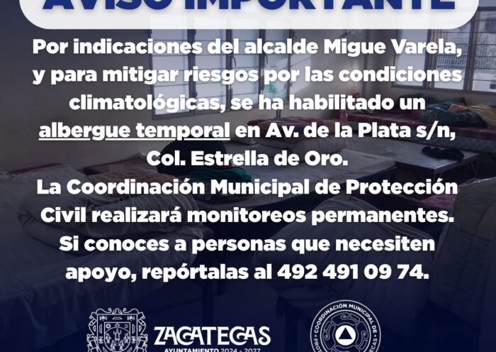 Ayuntamiento de Zacatecas activa plan de contingencia por temporada invernal Ante las bajas temperaturas registradas en el territorio capitalino y en atención a las alertas…