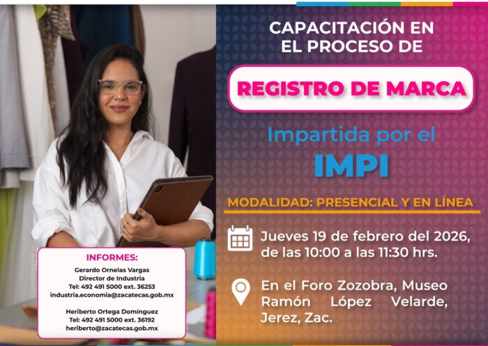 La Dirección de Desarrollo Económico y Social, hace una atenta invitación a la Capacitación en el Proceso para el Registro de Marca, impartido por el IMPI