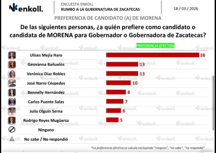 Ulises Mejía Haro consolida ventaja hacia gubernatura El diputado federal por Morena encabeza la intención de voto de los zacatecanos con 38%; el…