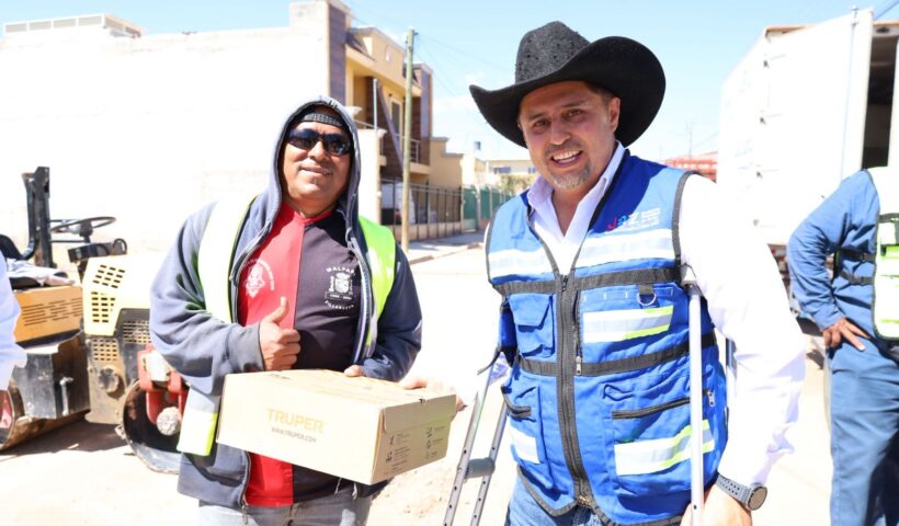 *RODRIGO UREÑO ENTREGA CALZADO A TRABAJADORES DE BACHEO* *Jerez, Zac.-* Para ratificar el compromiso del Gobierno Municipal con sus trabajadores, el Presidente Rodrigo Ureño Bañuelos,…