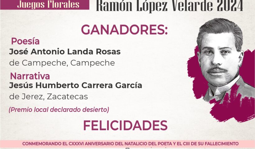 Ver más Ganadores de los «Juegos Florales Ramón López Velarde» Jerez 2024Categoría: Nacionales