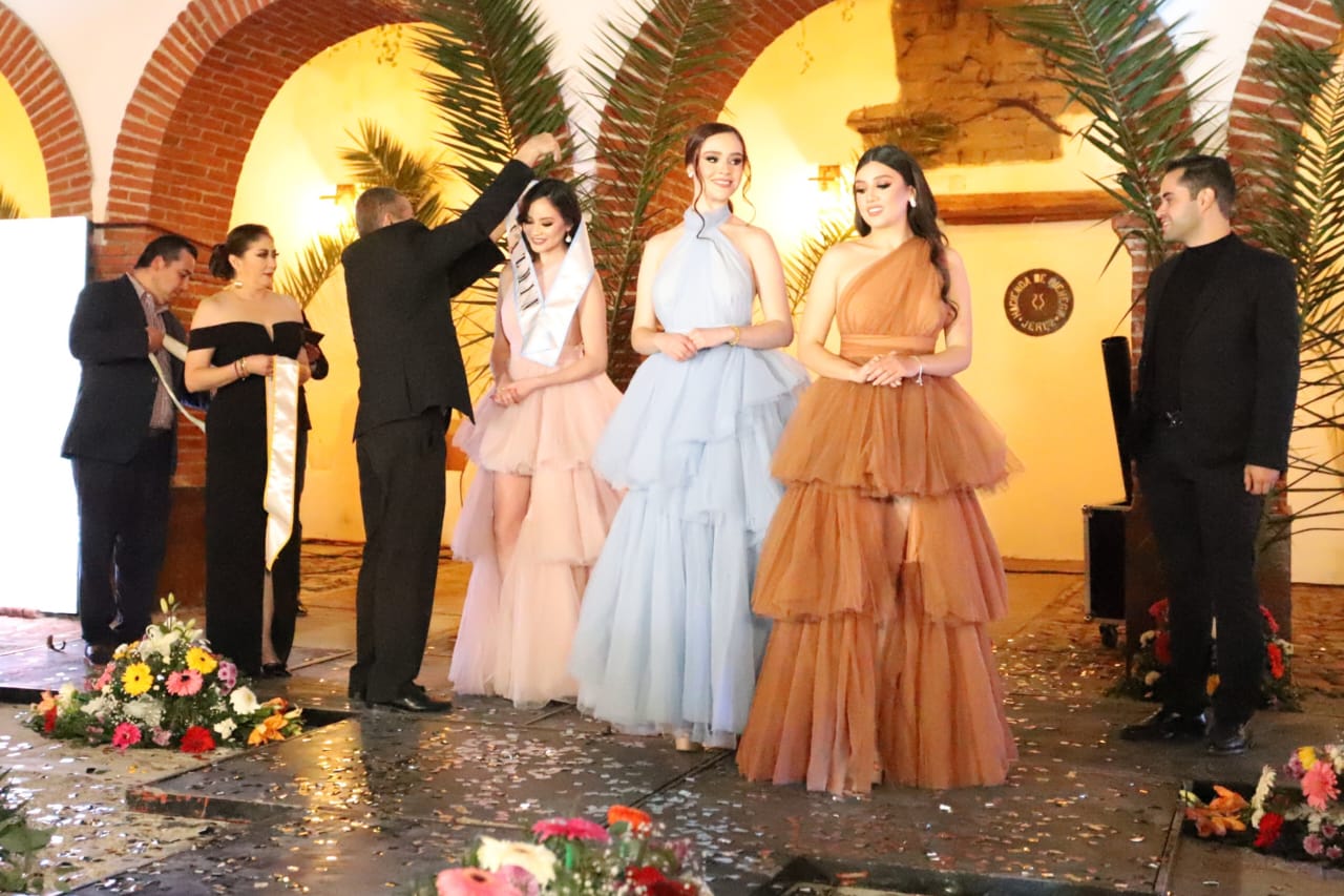 Durante el evento, la talentosa jerezana Paty Santoyo deleitó con su voz, dando paso a las hermosas contendientes, quienes posaron con vestidos de noche que realzaban aún más su belleza. Yazmín lució un vestido rosa pastel, Samantha uno azul celeste y Merali uno café claro.