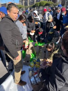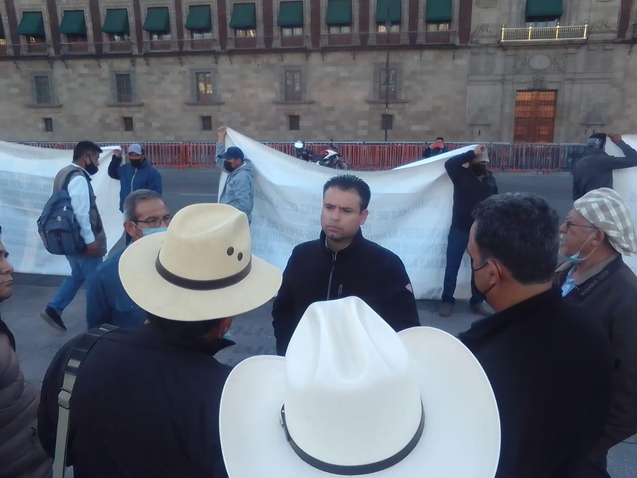 Ciudad de México.- Habitantes de comunidades de los municipios de Jerez y Tepetongo que han sido desplazados de sus hogares, acompañados por el Diputado Federal Miguel Varela, viajaron este jueves hasta la capital del país para manifestarse frente a Palacio Nacional, exigen diálogo con autoridades federales.