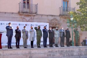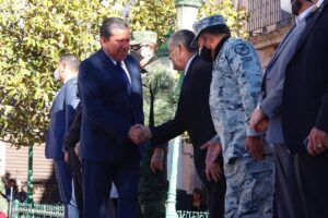 Jerez, Zacatecas. – El presidente municipal de Jerez José Humberto Salazar Contreras dio la bienvenida al gobernador del estado de Zacatecas David Monreal Ávila, quién asistió a los honores a la bandera que se llevaron a cabo este lunes, en compañía de las autoridades en materia de seguridad del estado. Ahí, reiteraron su compromiso con la restauración de la paz en el municipio, así como en toda la entidad. Para ello se anunció el “Operativo Recuperación”, con el que se dará certeza a las familias jerezanas de las comunidades.