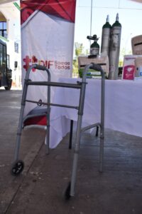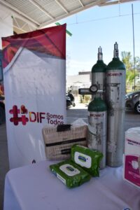En ese sentido los hermanos Amador Esquivel y María de los Ángeles Esquivel, migrantes de la comunidad Guadalupe Victoria, entregaron al DIF tres tanques de oxígeno, dos pares de muletas, un andador, pañales para adulto y guantes médicos.