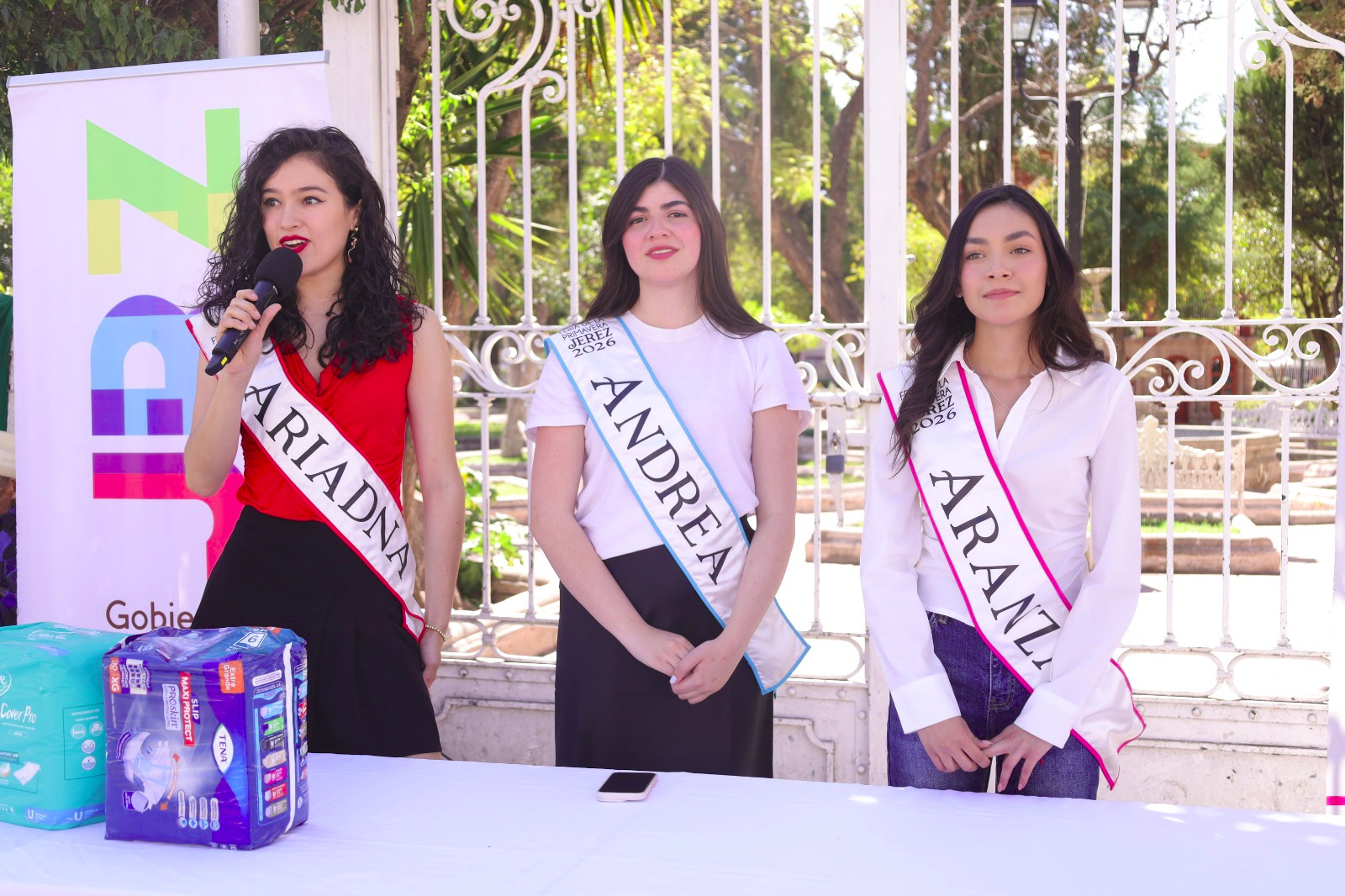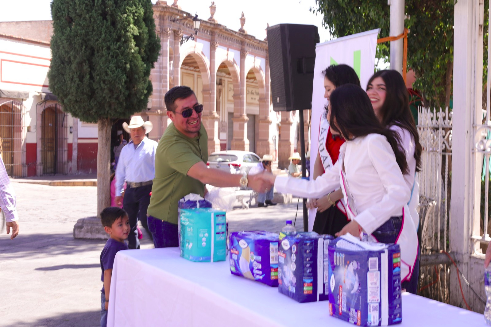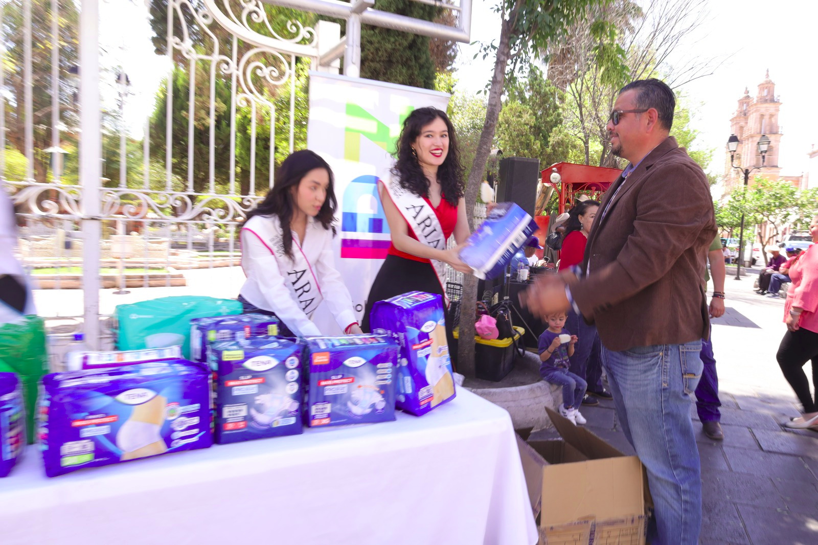 *Jerez, Zac.-* Este domingo, en el Jardín Principal, se llevó a cabo la Colecta de Pañales organizada por las candidatas a reina de la Feria de la Primavera 2026, Ariadna, Aranza y Andrea, quienes convocaron a la ciudadanía a sumarse a esta causa solidaria en beneficio de personas adultas mayores del municipio.