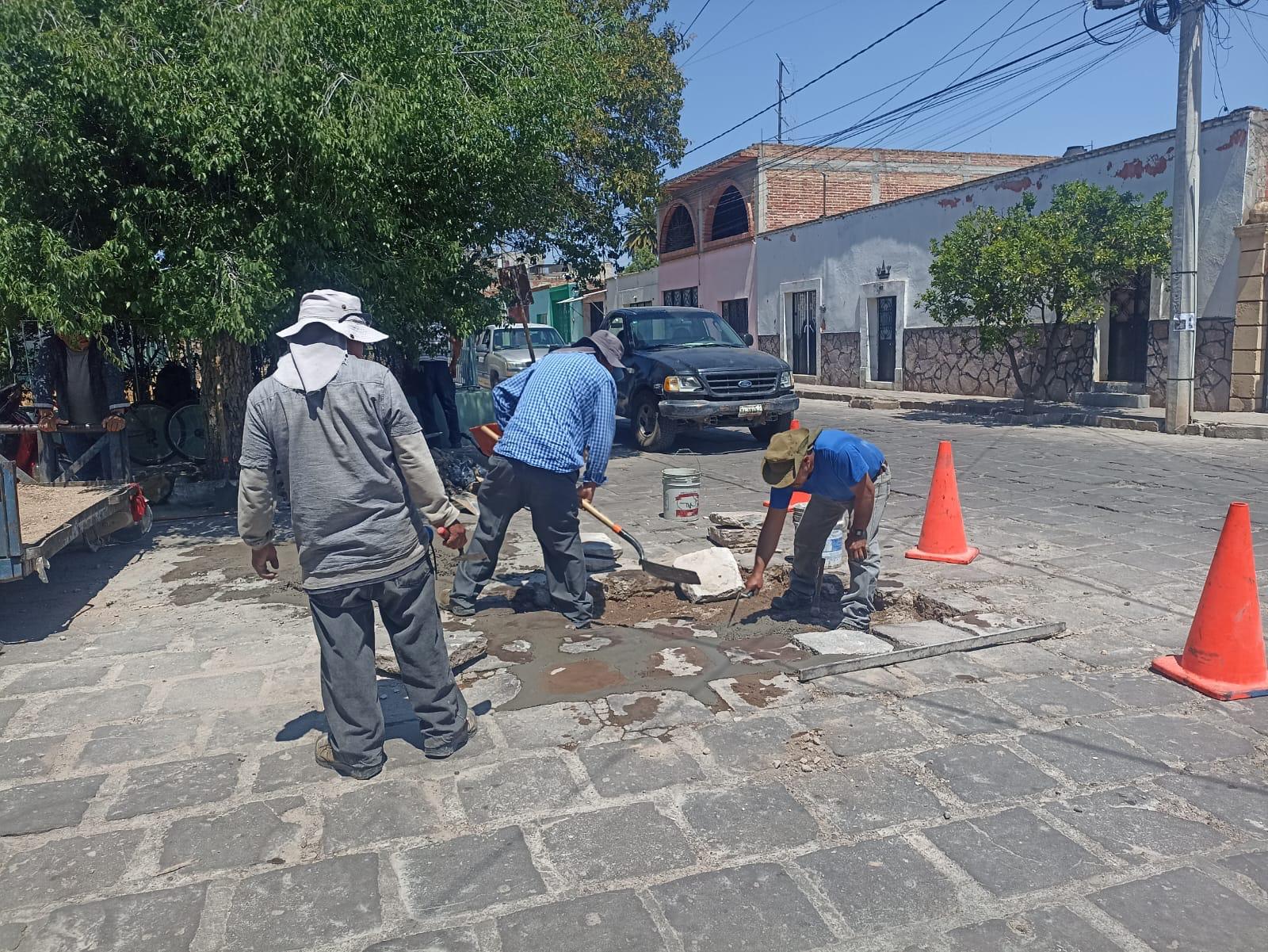 Por instrucciones del presidente municipal Rodrigo Ureño Bañuelos, personal de la Dirección de Obras y Servicios Públicos del Ayuntamiento de Jerez, realiza trabajos de mejoramiento de calles a través del programa de bacheo permanente; el Director Rubén Dávila Aguilar, comentó que se atiende la calle Tres Cruces en el cruce con calle Guerrero en la zona centro.