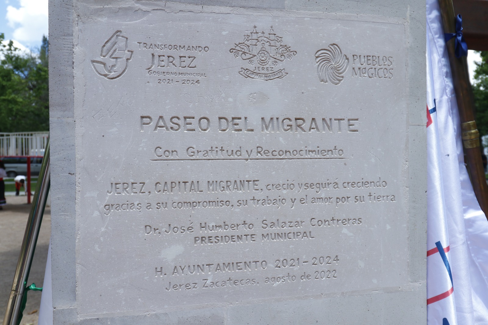 En el Paseo Migrante de la Alameda Francisco García Salinas, se llevó a cabo el acto con el objeto de reconocer a veinte jerezanos migrantes que con su trabajo diario y su desempeño, dan cotidianamente ejemplo del ser jerezano, poniendo en alto a su tierra cultivando valores y dejando constancia de su capacidad y liderazgo.