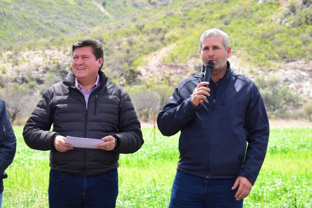 El Presidente Municipal Antonio Aceves Sánchez acompañó Secretario del Campo Adolfo Bonilla Gómez, a la entrega del proyecto de la línea de conducción de riego de la presa La Tortuga en la comunidad La Cañada.