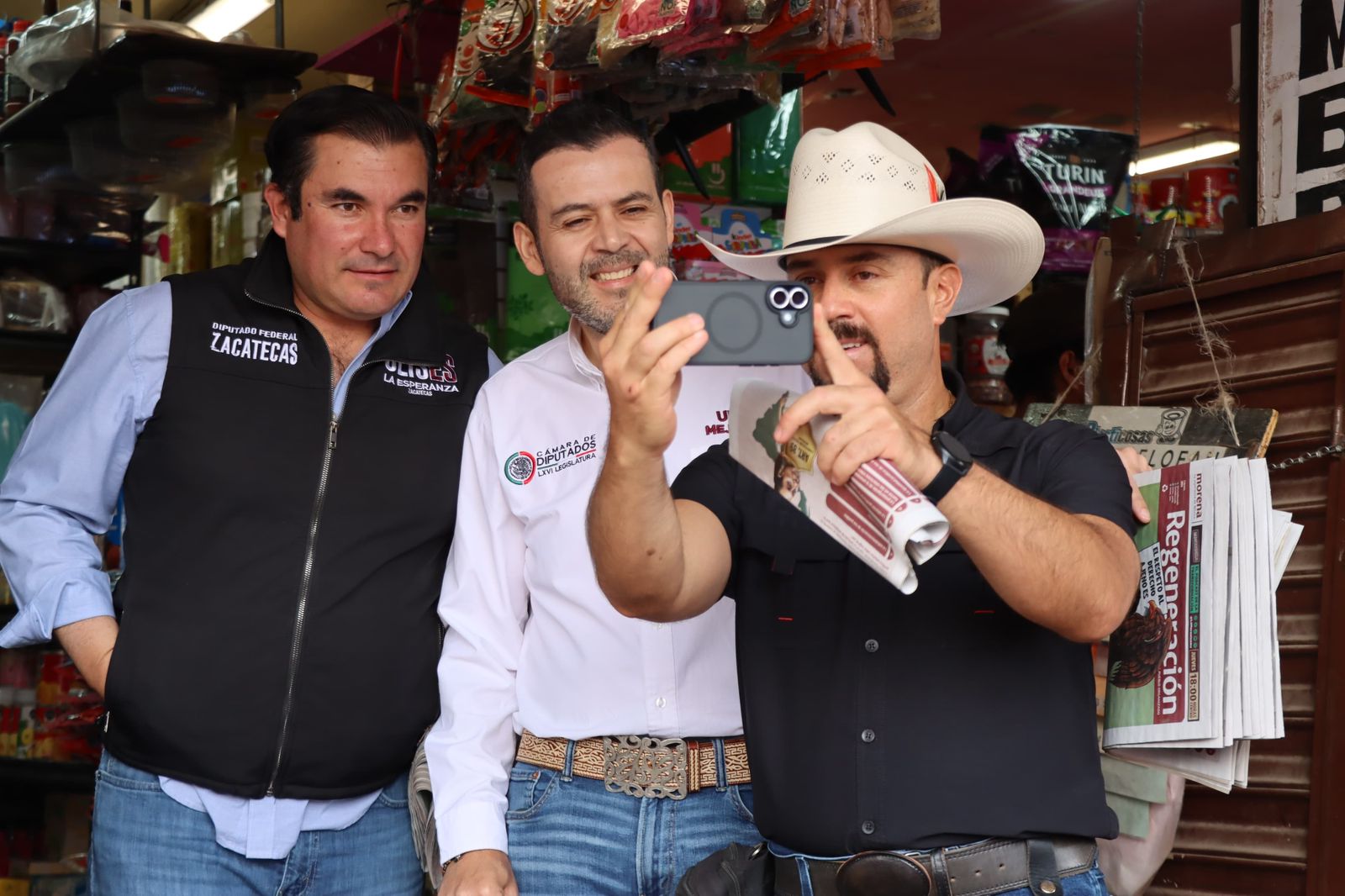 Calera, Zac.- El diputado federal por Zacatecas, Ulises Mejía Haro, recorrió el tianguis de Calera como parte de su trabajo permanente en territorio, donde sostuvo un diálogo directo con comerciantes, familias y asistentes para informar sobre su labor legislativa en el Congreso de la Unión.