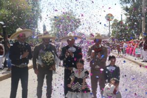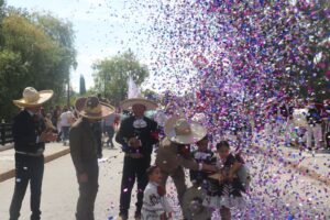 Fue el propio munícipe quien presidió el protocolo, en el que tres niños vestidos con atuendo charro hicieron entrega de gardenias a tres migrantes reconocidos, en representación de los millones que viven de aquel lado de la frontera, un momento que encierra un simbolismo de afecto y unidad entre los paisanos y su pueblo natal, a través de esta flor representativa de una época clásica de Jerez.