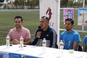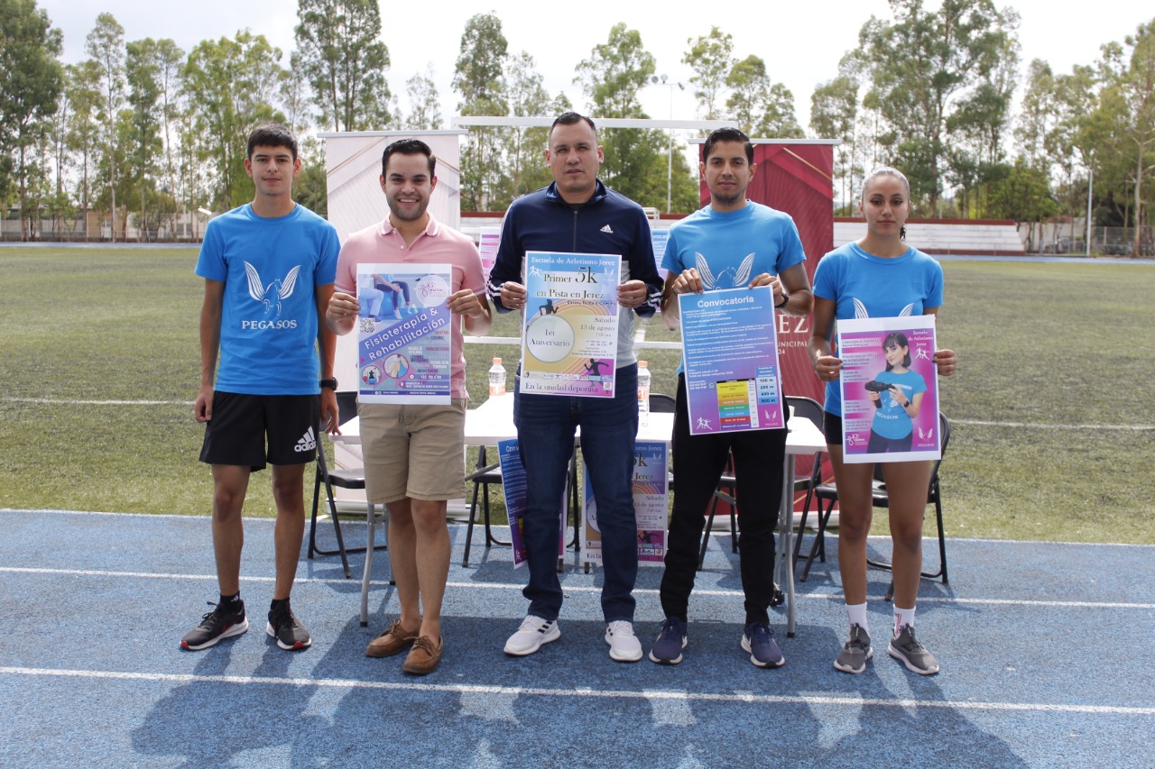 Jerez, Zacatecas. – El H. Ayuntamiento de Jerez, presidido por el alcalde Humberto Salazar Contreras, a través de la Coordinación Municipal del Deporte, de la cual es titular Armando Quiñones Ortiz, y en compañía del titular de la Liga Municipal de Atletismo, César Pérez Hernández, y el regidor comisionado a Juventud y Deporte, Luis Mario Martínez, tuvo a bien realizar una conferencia de prensa en las instalaciones de la Unidad Deportiva para dar a conocer la convocatoria de la “Primer Carrera 5k en pista” a realizarse el próximo 13 de agosto.