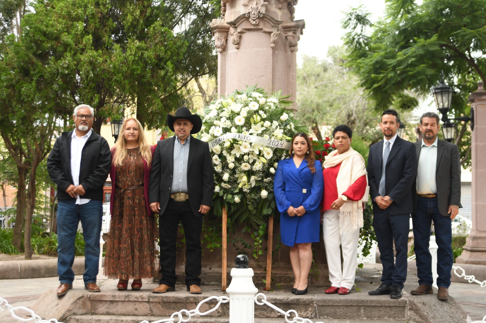 Dentro de la ceremonia, el busto en honor al Padre de la Patria recibió la ofrenda floral por parte de los asistentes al evento entre los que se encontraron la presidenta honorífica del DIF Municipal, Estéfana Casas, y la síndico municipal Susana Argüelles, además de los regidores Juan Manuel García, Javier Luna, Harayde Lozano, Fabiola Salazar, Víctor Marín, Miriam carrillo, María Reyes, Dionicio Saldívar y Hebert Herrera.