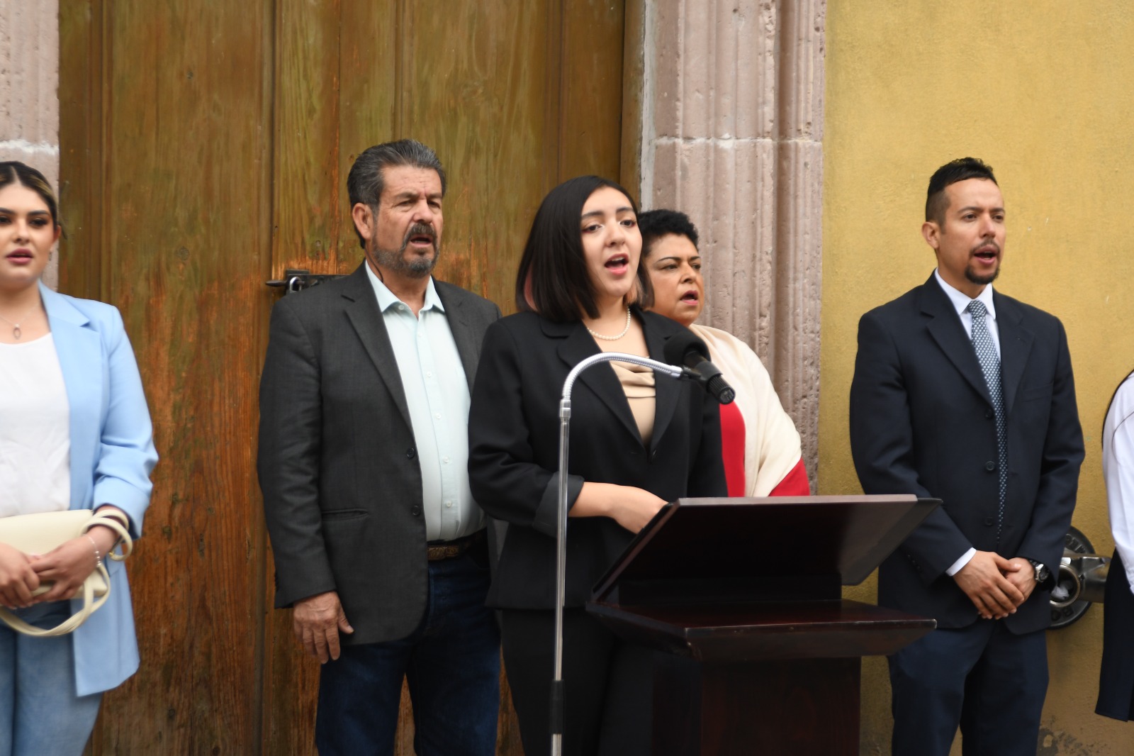 Alumnos de la secundaria Francisco García Salinas realizaron la lectura de la reseña histórica de los eventos acontecidos a partir del 16 de septiembre de 1810, al tiempo que recitaron un poema alusivo a la patria, resaltando el espíritu inquebrantable de quienes lograron la independencia como un derecho conquistado con sacrificio y determinación.