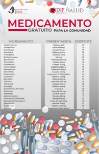 A fin de continuar brindando a familias vulnerables y población en general alternativas de mejora a su salud, el Sistema Municipal DIF tiene disponibles en el Dispensario Médico, más de mil 402 medicamentos para tratar diferentes afecciones.
