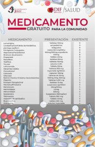 A fin de continuar brindando a familias vulnerables y población en general alternativas de mejora a su salud, el Sistema Municipal DIF tiene disponibles en el Dispensario Médico, más de mil 402 medicamentos para tratar diferentes afecciones.