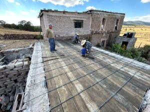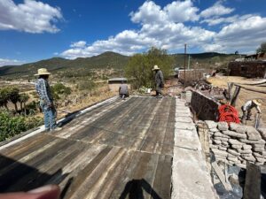 El municipio y el estado realizan la colocación de cimbra y se arma la estructura para la construcción de otro techo más en la comunidad Monte de los García.