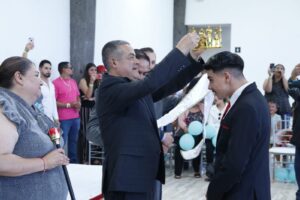 Jerez, Zac.-En el marco de los festejos del Día del Estudiante, el Colegio de Bachilleres de la Ermita de Guadalupe (COBAEG), plantel 04, llevó a cabo el certamen de belleza y coronación de Señorita y Chico COBAEG 2023. El evento contó con la presencia de autoridades educativas y miembros de la administración municipal 2021-2024.