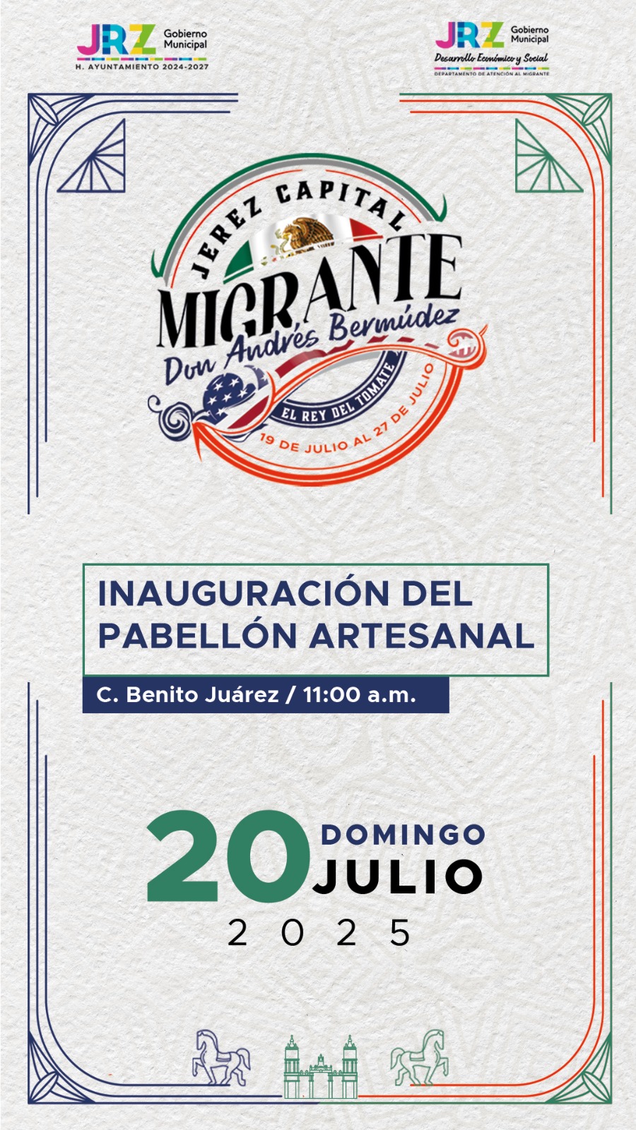 Del 19 al 27 de julio, vive la Semana “Jerez, Capital Migrante” en honor a Don Andrés Bermúdez.