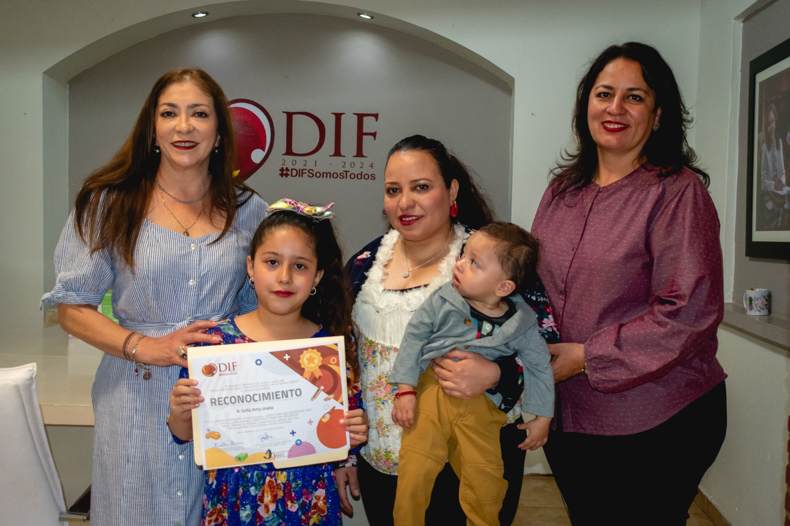 La ganadora de este título, de 7 años de edad y alumna de segundo grado de la primaria «General Ignacio Zaragoza», fue reconocida y premiada tanto por la presidenta honorífica del Sistema Estatal DIF, Sara Hernández de Monreal, como por la presidenta honorífica del SMDIF, Bertha Alicia García Duarte, quienes destacaron su notable talento, creatividad y esfuerzo por hacer valer la opinión de los niños acerca del entorno en el que viven.