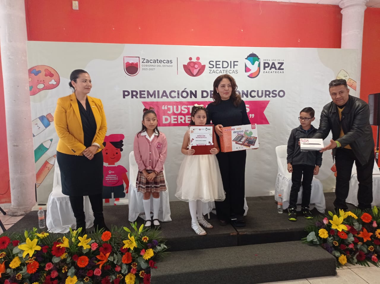 Como resultado de la convocatoria estatal «Justo por mis Derechos 2024» promovida por el DIF Municipal, la niña jerezana Sofía Ortiz Ureño, obtuvo una mención honorífica por su destacada participación entre dos mil concursantes, gracias a su obra «Libertad de vivir sin violencia».