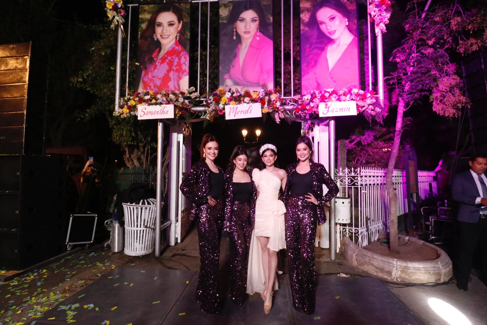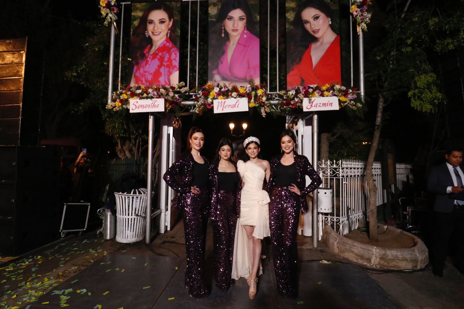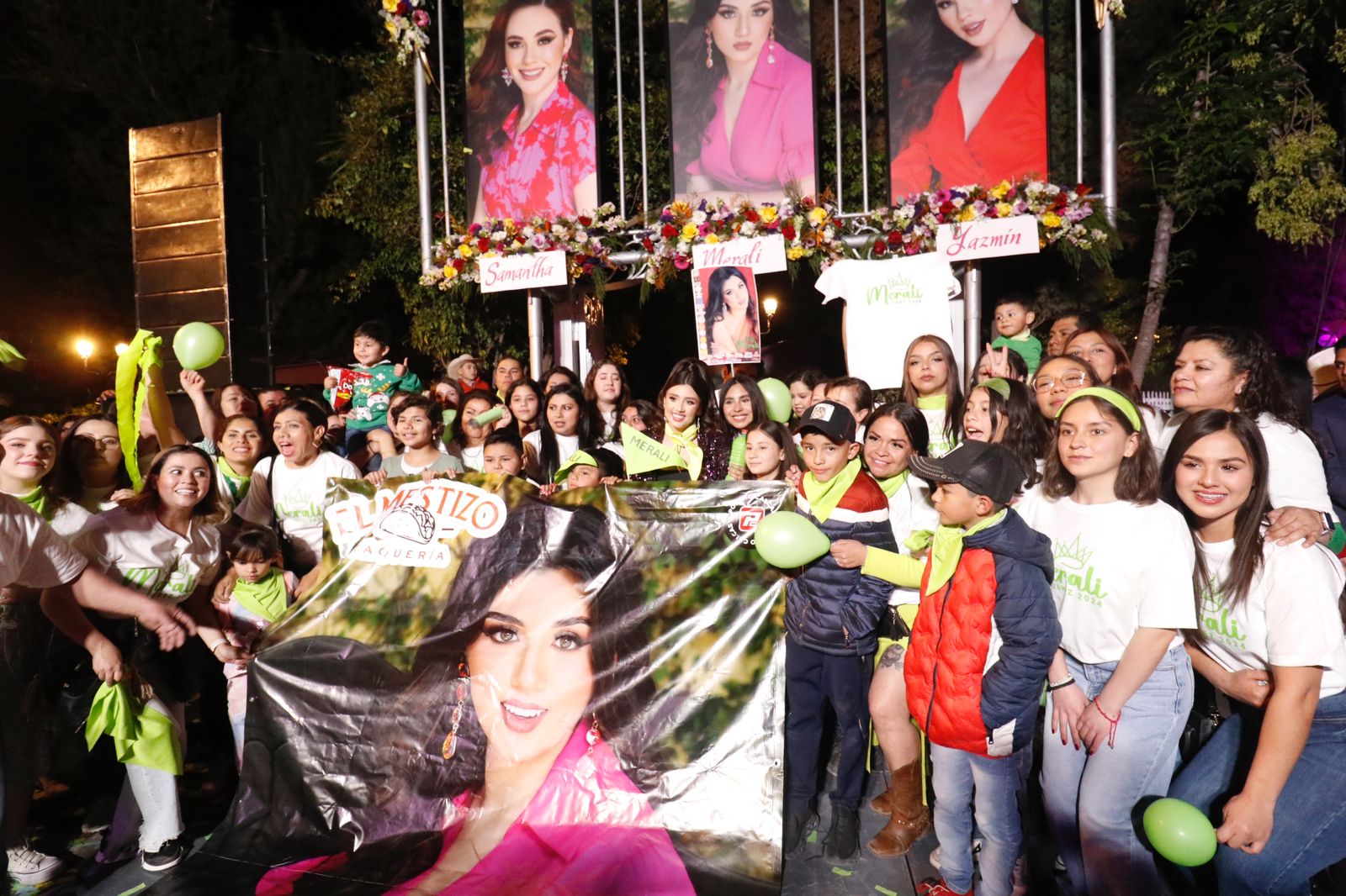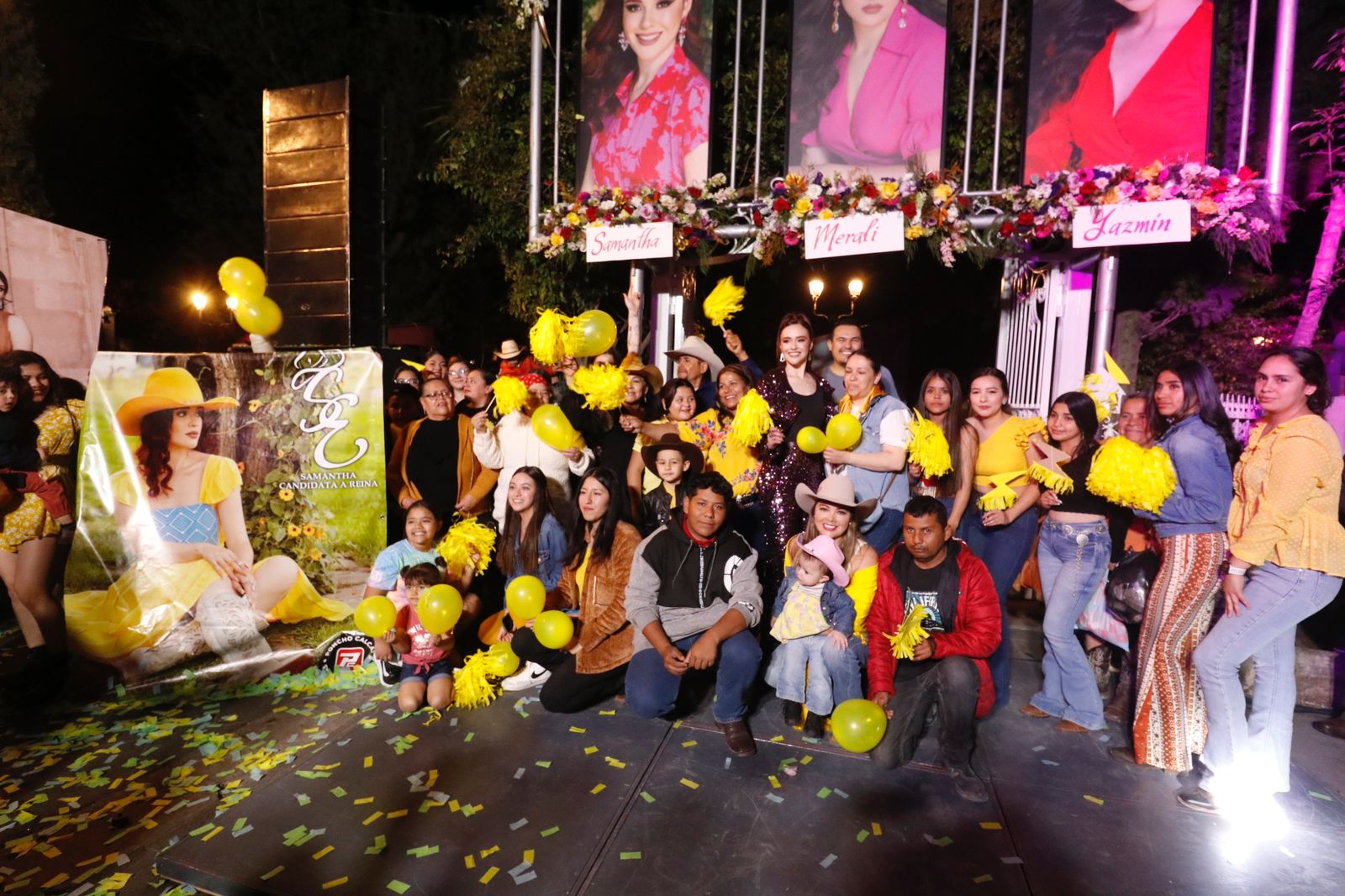 Al pie de sus fotografías, aún sin revelar, Samantha, Merali y Yazmín realizaron una pasarela y presentación, siendo arropadas por sus familiares y amigos, quienes formaban parte de las porras de colores amarillo para Samantha, verde para Merali y azul para Yazmín, añadiendo así un toque de calidez y emoción al evento. Los asistentes demostraron un apoyo incondicional a las candidatas, creando un ambiente de unidad y alegría.