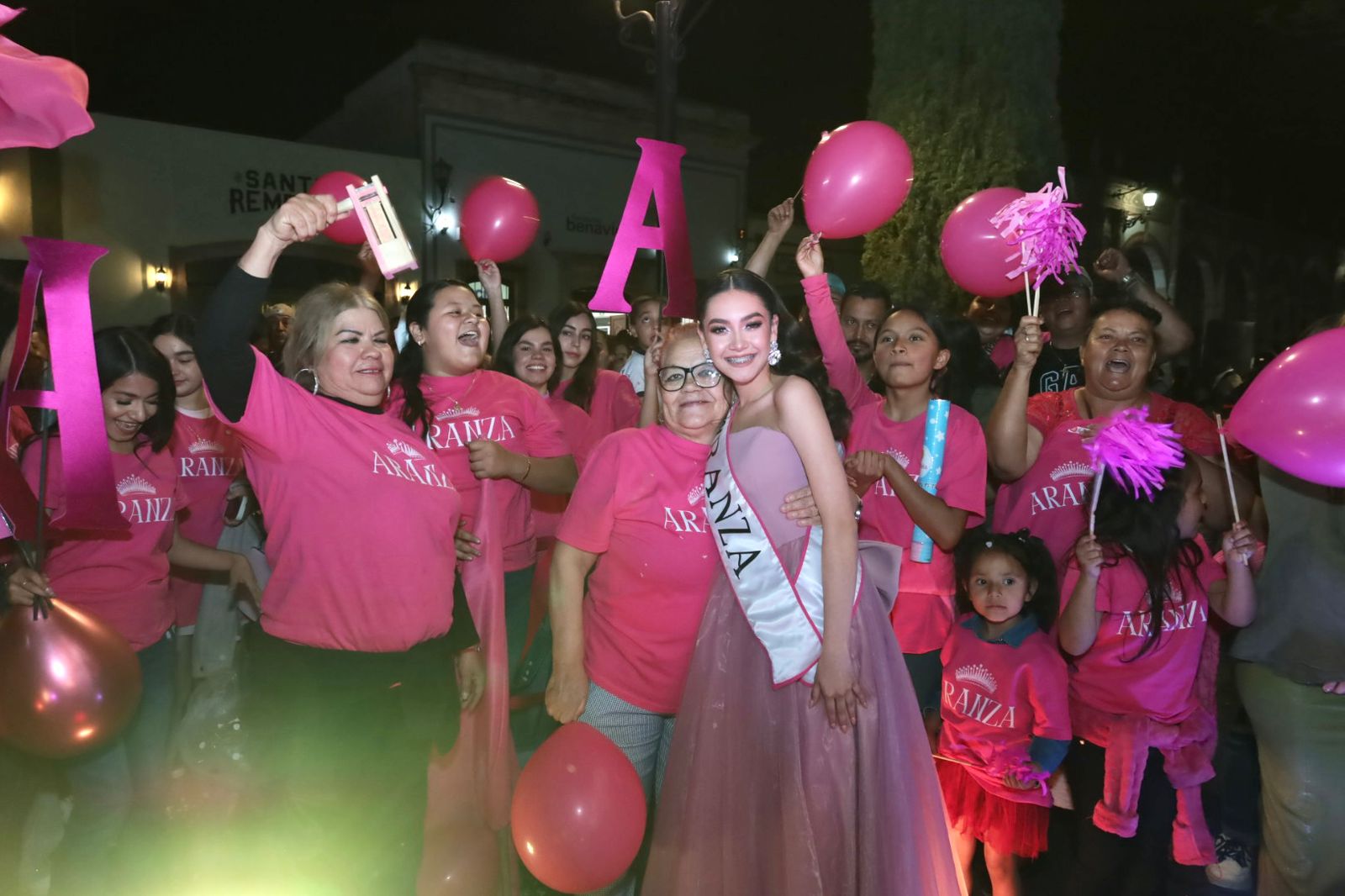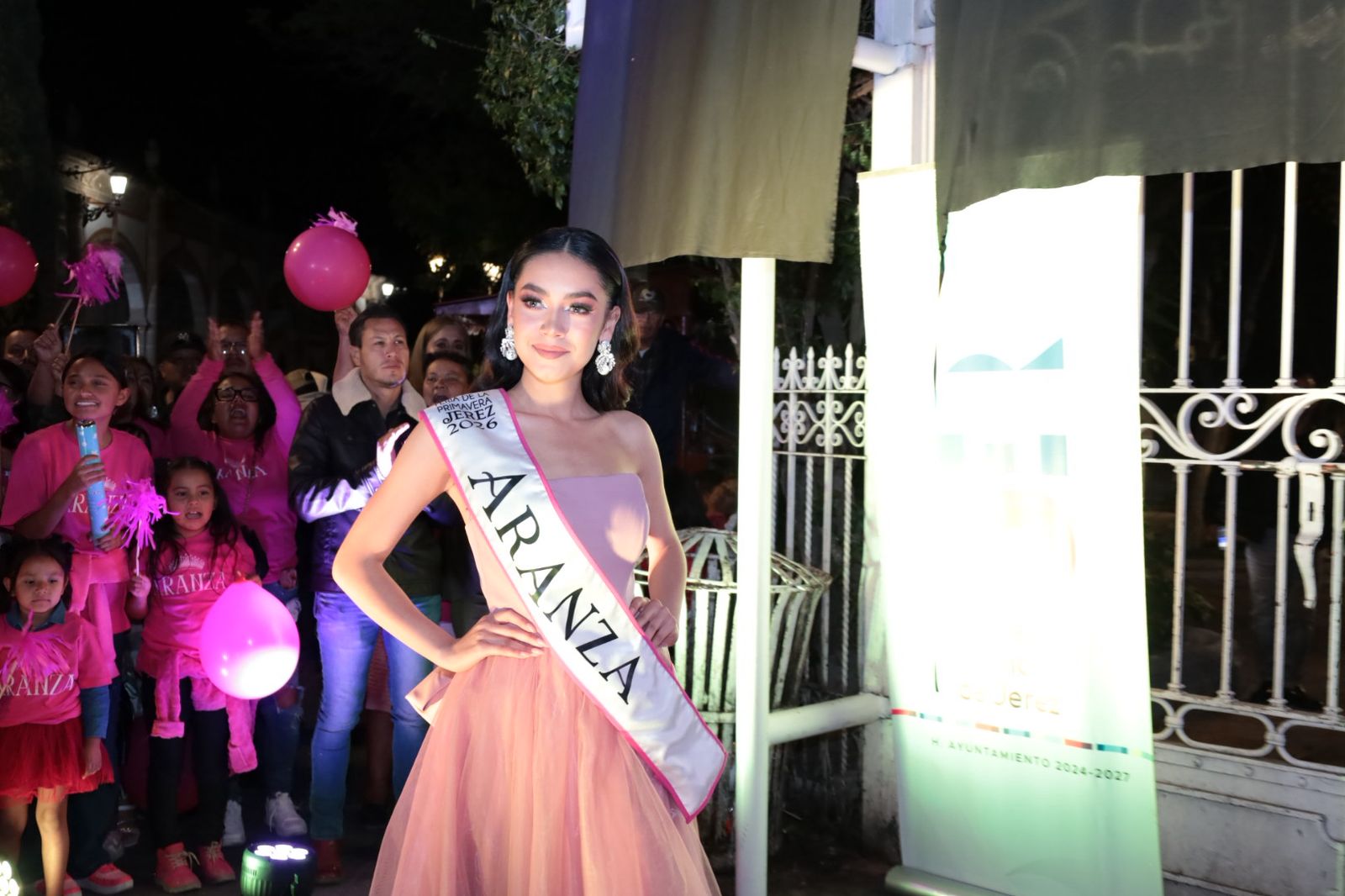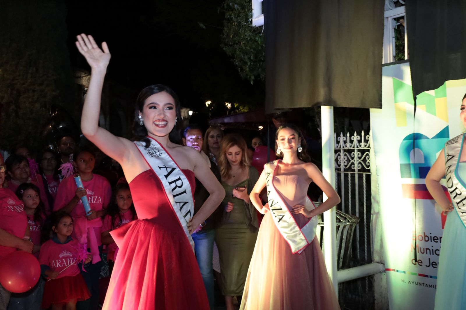 Familiares, amigos y simpatizantes de cada aspirante se dieron cita en el Jardín Principal para respaldarlas con entusiasmo, portando los colores distintivos rojo, rosa y azul. Entre porras y un ambiente festivo acompañado de pirotecnia, fueron reveladas las imágenes de las tres jóvenes ante los asistentes.
