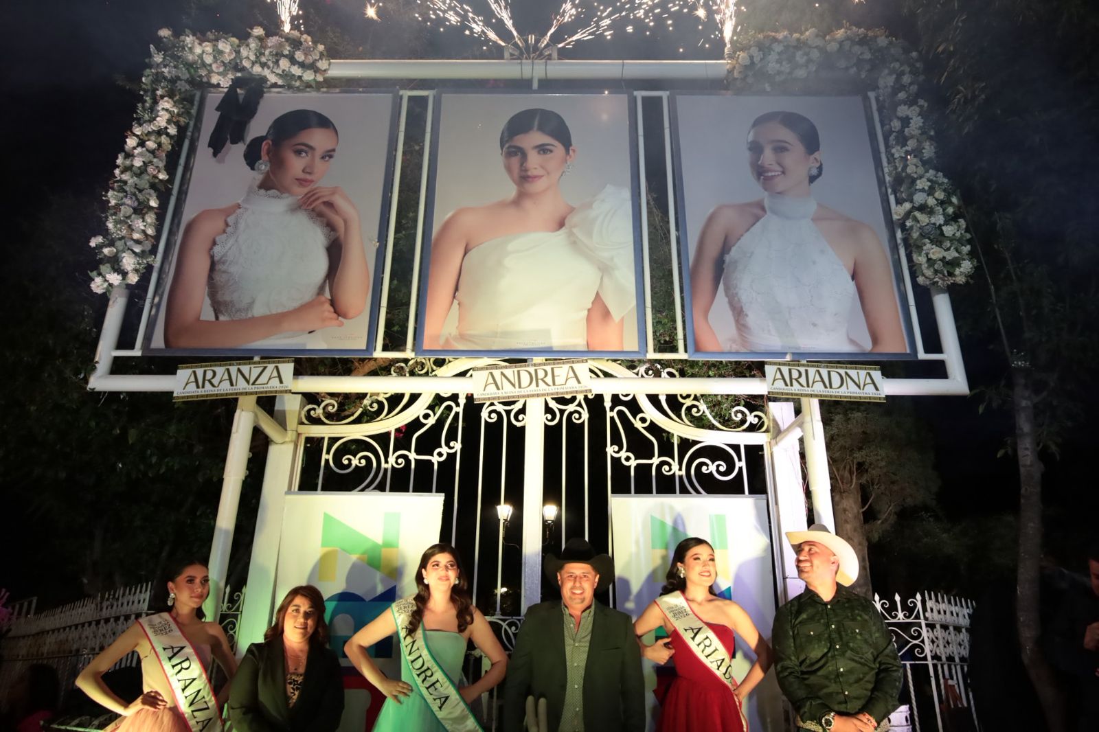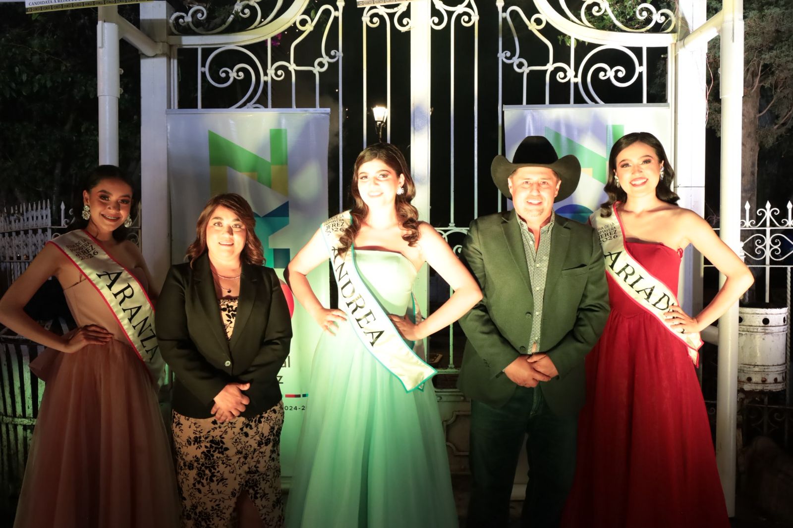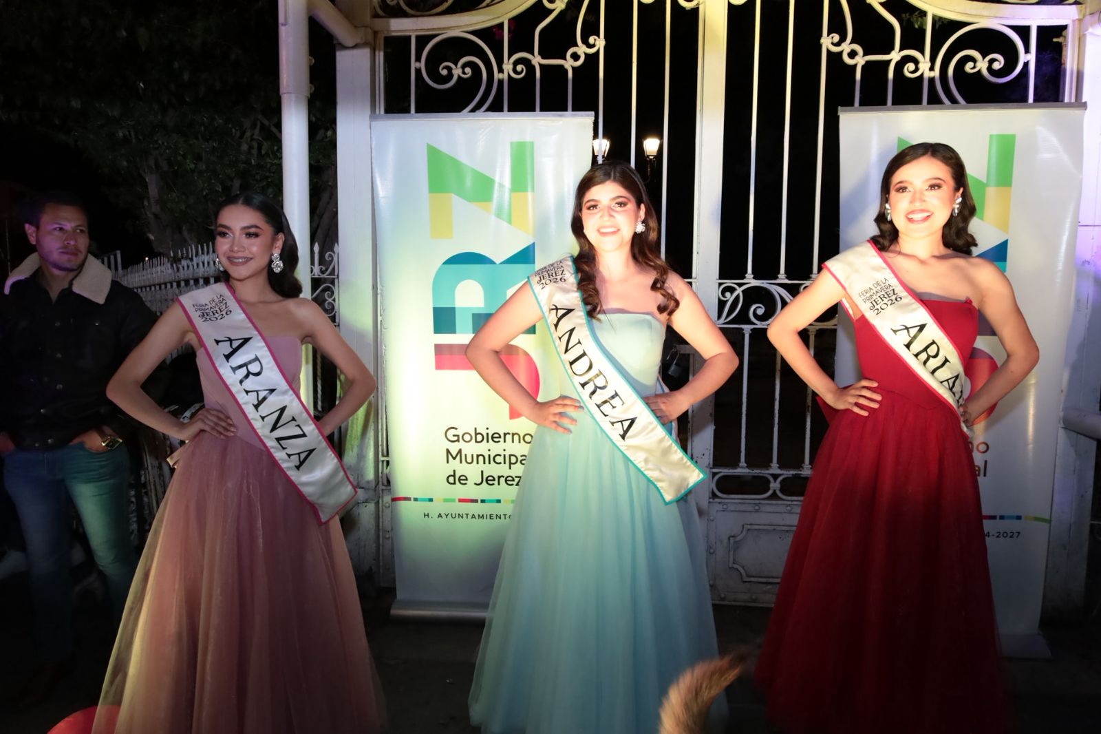El Presidente Municipal, Rodrigo Ureño Bañuelos, acompañado de su esposa Estefana Casas y del presidente del Comité de Feria, Alan López Dávila, encabezó la develación de las fotografías de las candidatas a Reina de la Feria de la Primavera Jerez 2026: Andrea, Aranza y Ariadna.