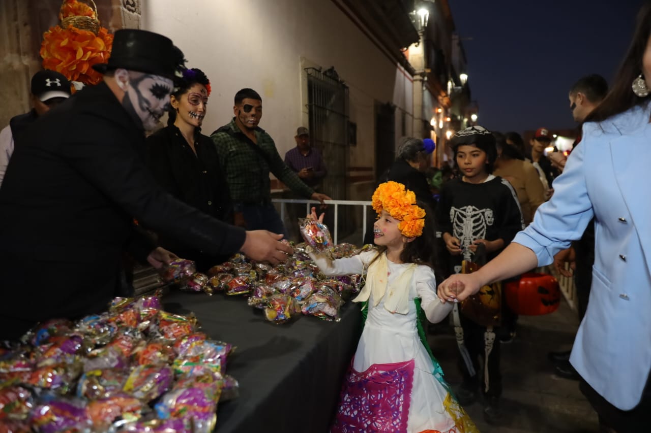 Con la entrega de dulces a niñas y niños por el Día de Muertos, el alcalde Rodrigo Ureño Bañuelos, y la presidenta honorífica del DIF Municipal, Estefana Casas González, dieron continuidad al festival «Jerezano Hasta los Huesos» y compartieron una vez más con las familias del municipio, la magia y tradición de las fiestas fúnebres mexicanas.