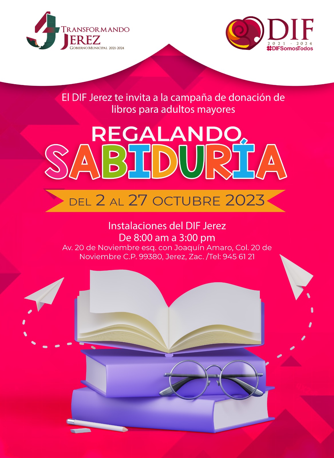 DIF JEREZ INVITA A CAMPAÑA DE DONACIÓN DE LIBROS EN BENEFICIO DE ADULTOS MAYORES