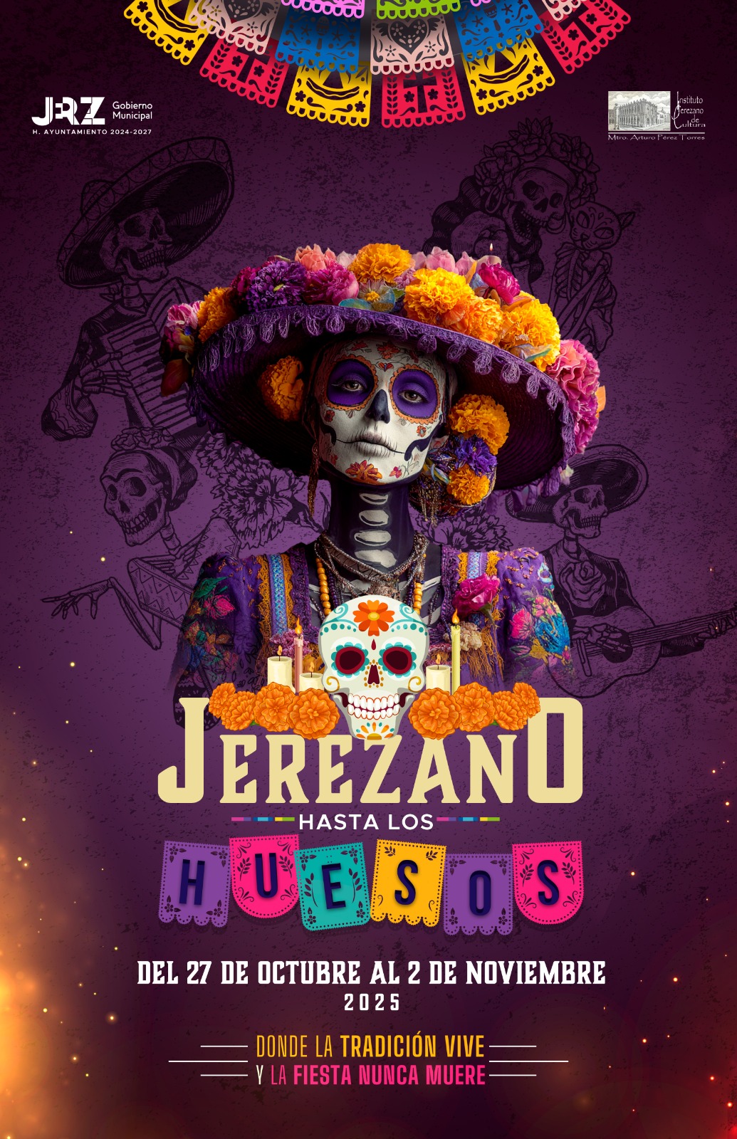 Del 27 de octubre al 2 de noviembre, vive con nosotros el Festival de Día de Muertos “Jerezano Hasta los Huesos” 🕯️🌼 —una celebración llena de música, color, tradición y orgullo jerezano.
