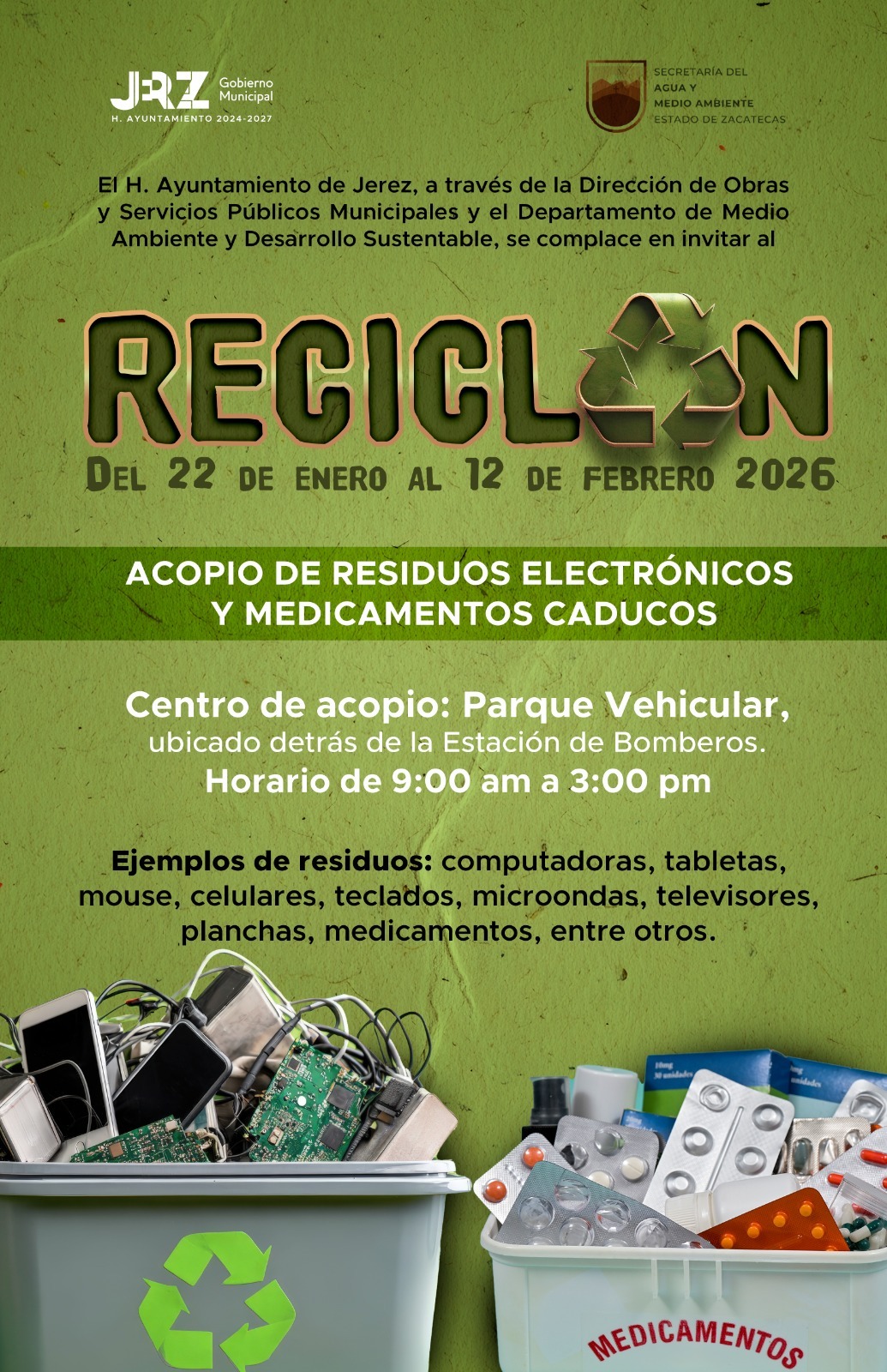 Trae tus residuos electrónicos y medicamentos caducos y contribuye al cuidado de nuestro planeta. 🌱