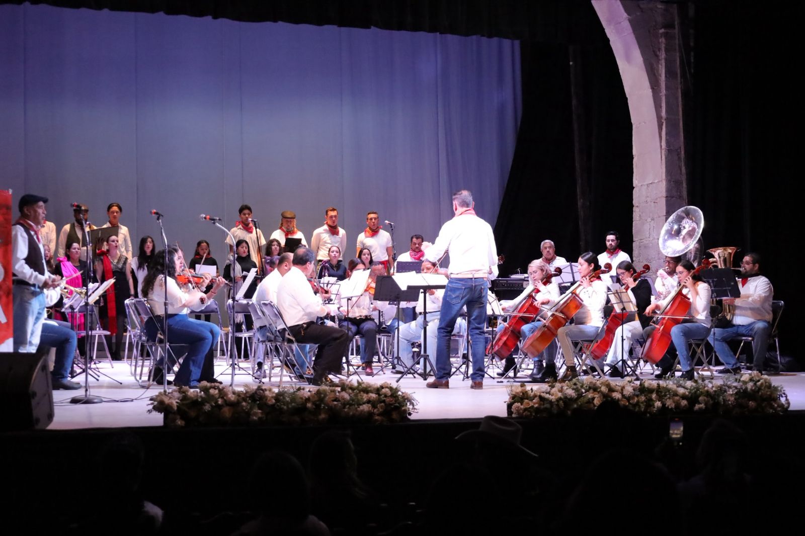 El presidente municipal, Rodrigo Ureño, entregó un reconocimiento al maestro Mario Enrique Acevedo, quien dirigió el concierto taurino realizado en el Teatro Hinojosa, con la destacada participación de la Banda Municipal, la Orquesta Sinfónica Juvenil y el grupo coral Amigos de la Buena Música (ABM).