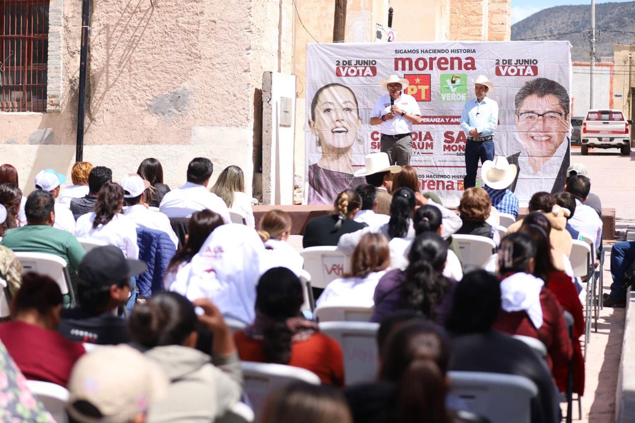 Saúl Monreal Ávila, la mañana de este sábado 06 de abril, arribó al semidesierto zacatecano. Comenzó en la cabecera del municipio más grande de la entidad: Mazapil. La bienvenida estuvo a cargo del candidato a la presidencia municipal, Mario Macías, quien revistió de azul celeste, del Partido Nueva Alianza, la asamblea pública.