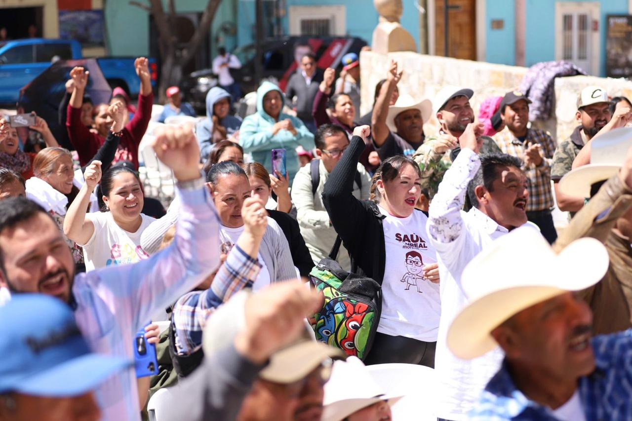 Un personaje ilustre, vecino del pueblo, recitó algunas consigas en verso para Saúl Monreal: ¡Con una escalera me voy a subir al cielo y con una pluma voy a dibujar, que este dos de julio, nos la vamos a llevar!