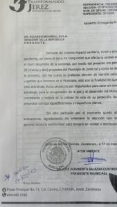 Durante la jornada de trabajo que llevó a cabo en la Ciudad de México el presidente Humberto Salazar donde estuvo con representantes federales en el Senado de la República y la Cámara de Diputados, solicitó apoyo para seguir trabajando por Jerez, sin distinción de colores y para un bien común agradeciendo en todo momento la sensibilidad política y social de los legisladores.