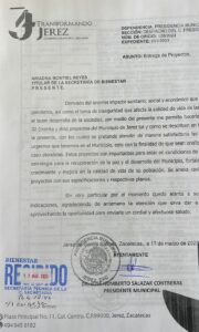 Para seguir avanzado en la estrategia de recuperación de la paz y el desarrollo social de Jerez, entregó 32 proyectos de primera necesidad que tienen que ver con la convivencia familiar.