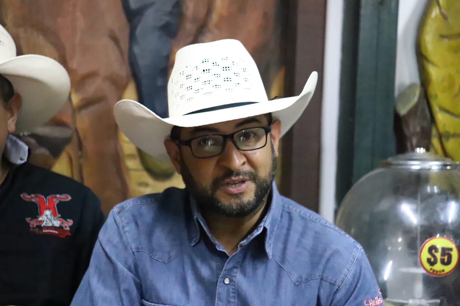 Jorge Acosta, locutor profesional de rodeo, expresó que es un gusto estar de regreso, ya que hubo cuestiones de salud en el mundo que impidieron la presentación de esta producción de una empresa jerezana y se encuentran felices de que se retome dentro de las actividades por la Segunda Semana del Migrante, en una competencia muy peculiar que se ha fortalecido en el estado de Zacatecas, que es Charros contra Vaqueros.