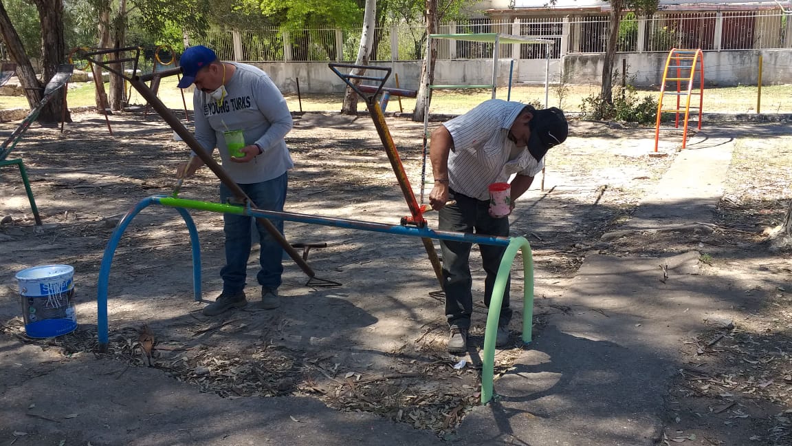 El la 21 y 22, se atendió la Plaza Principal y el Estadio Ramón López Velarde en el cometido de crear más y mejores espacios para la sana convivencia de las familias, con acciones de bacheo de concreto hidráulico, limpia, rehabilitación de juegos infantiles, áreas verdes y alumbrado público.