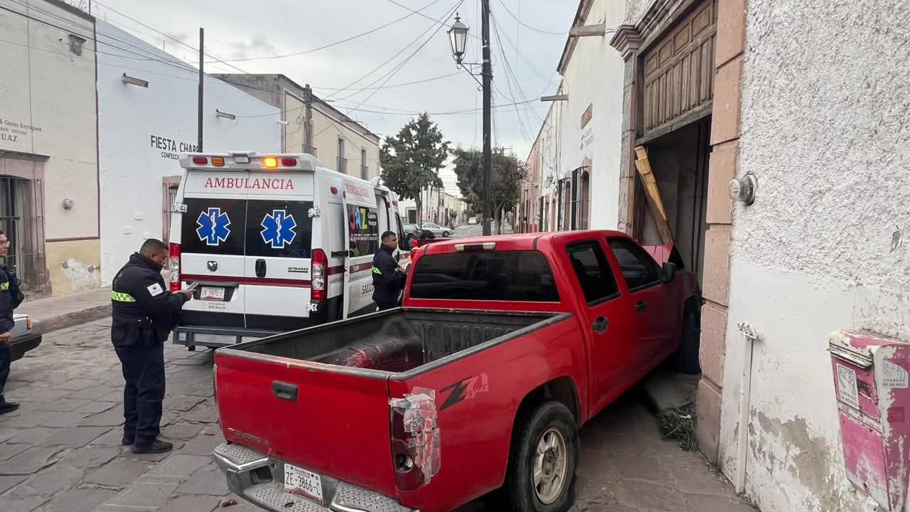 Jerez, Zac. Hoy por la mañana se suscitó un lamentable accidente automovilístico dentro de la mancha urbana de la ciudad de Jerez, fue en la calle del Santuario (antigua Bizarra Capital), en dónde se vio involucrada una camioneta pick up de la marca Chevrolet en color rojo, la cual por motivos aún desconocidos, se impactó contra la puerta de las oficinas de Correos de México.