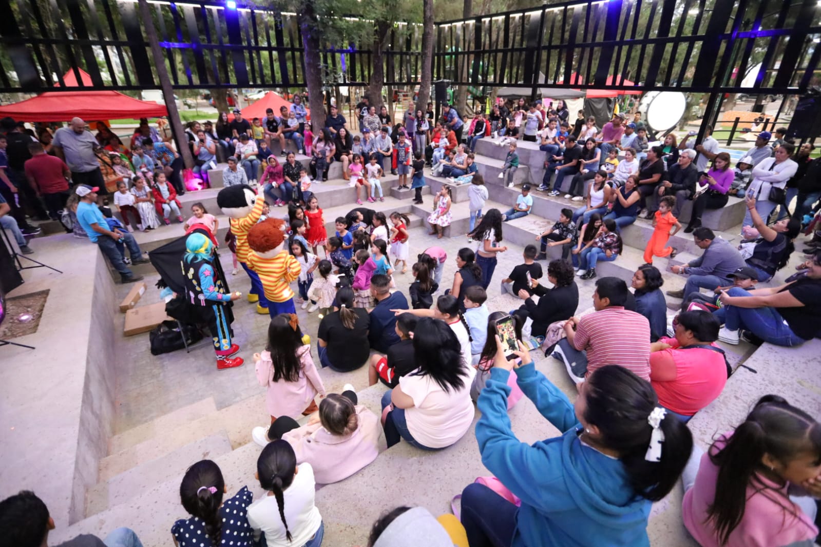 El Presidente en función y el electo, acompañados de integrantes del gabinete e invitados, realizaron un recorrido por el lugar, en tanto, en el foro cultural al aire libre se desarrollaron los primeros eventos oficiales, con el espectáculo divertido de un payaso y la intervención del taller de Danza de Jackie Ultreras.