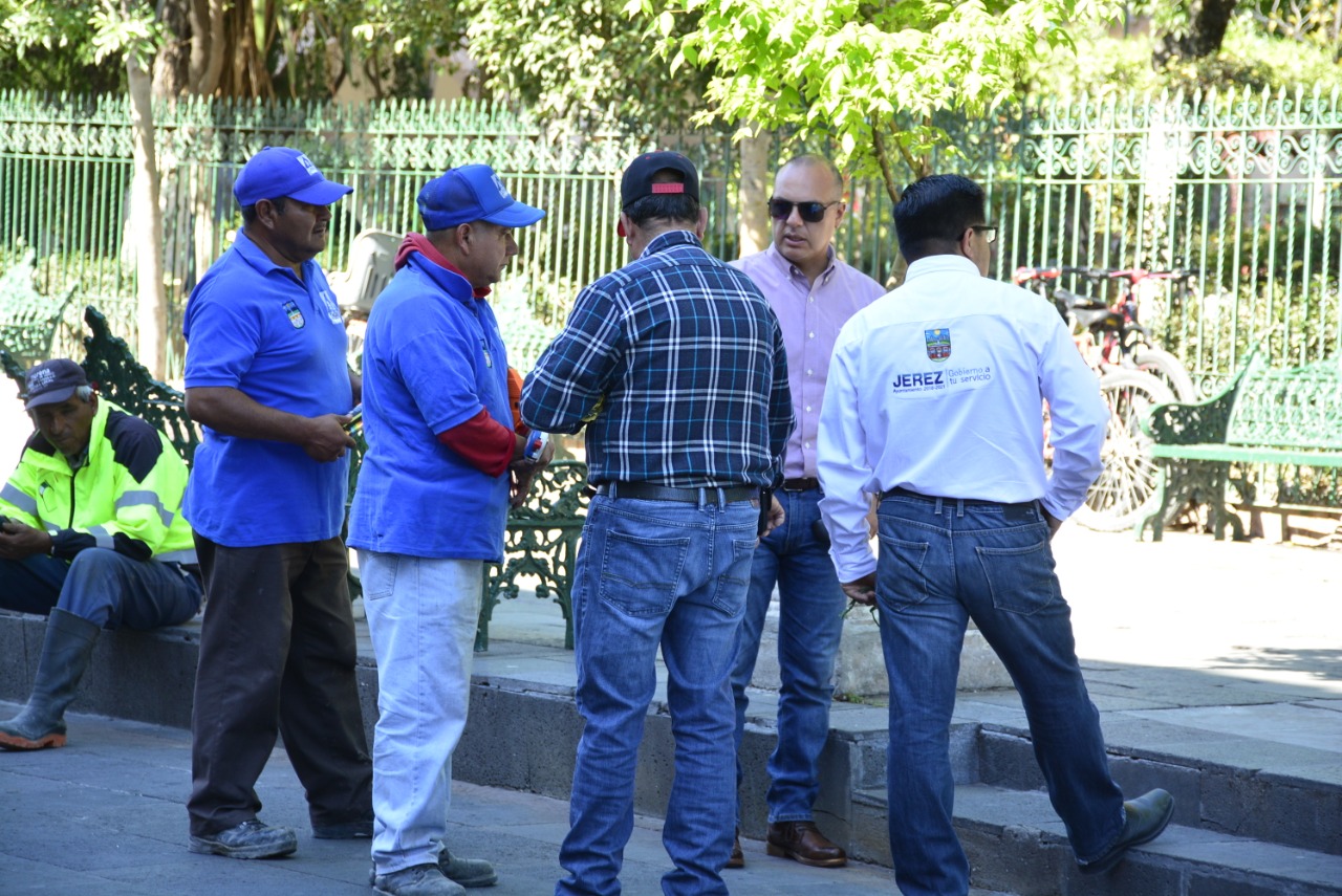 Personal de la Dirección de Obras y Servicios Públicos de Jerez comenzó trabajos de rehabilitación en el jardín Rafael Páez, dentro de la Caravana de Servicios Públicos número 20.