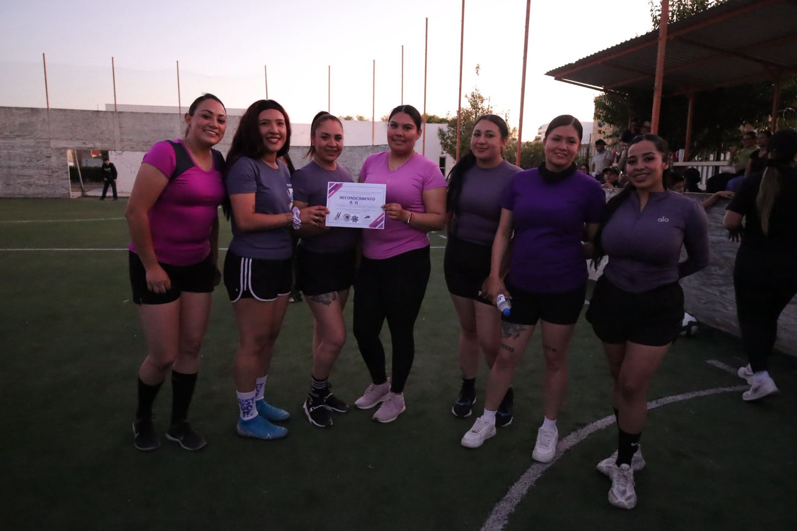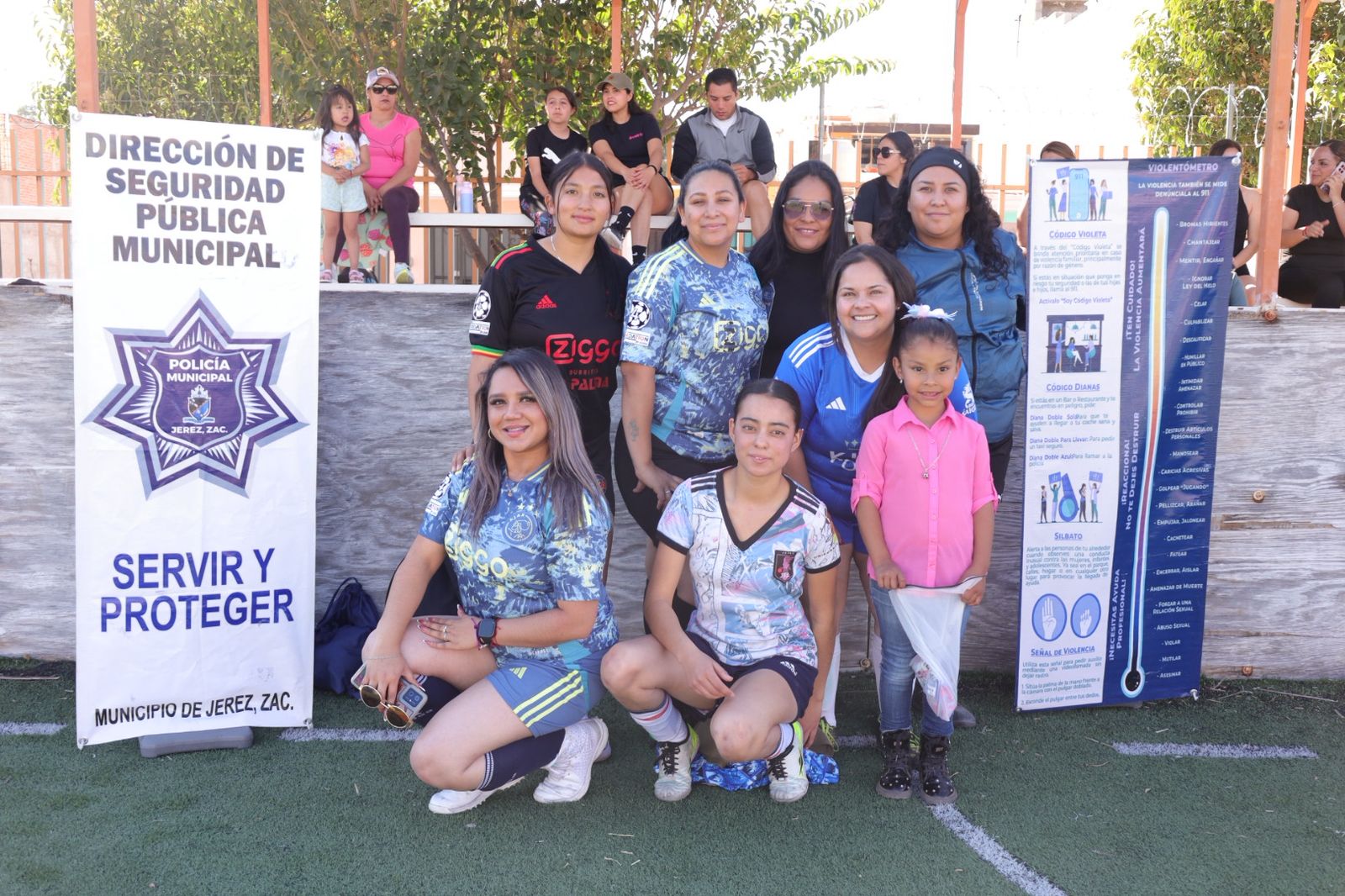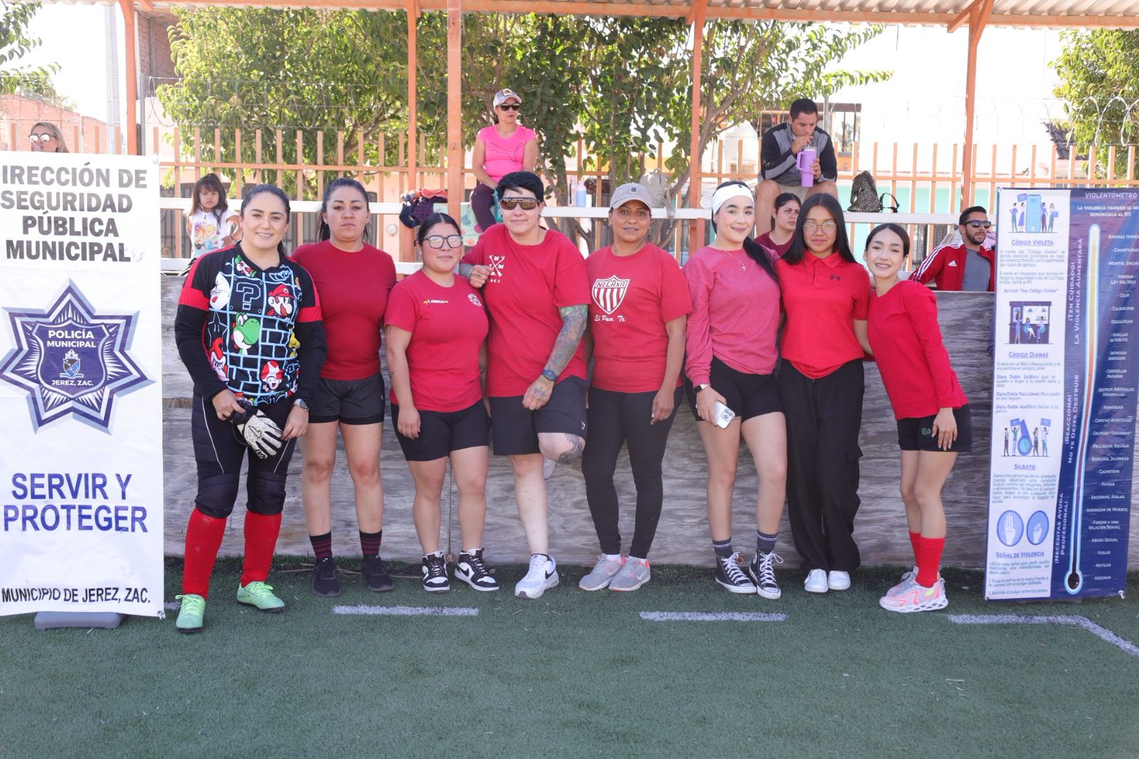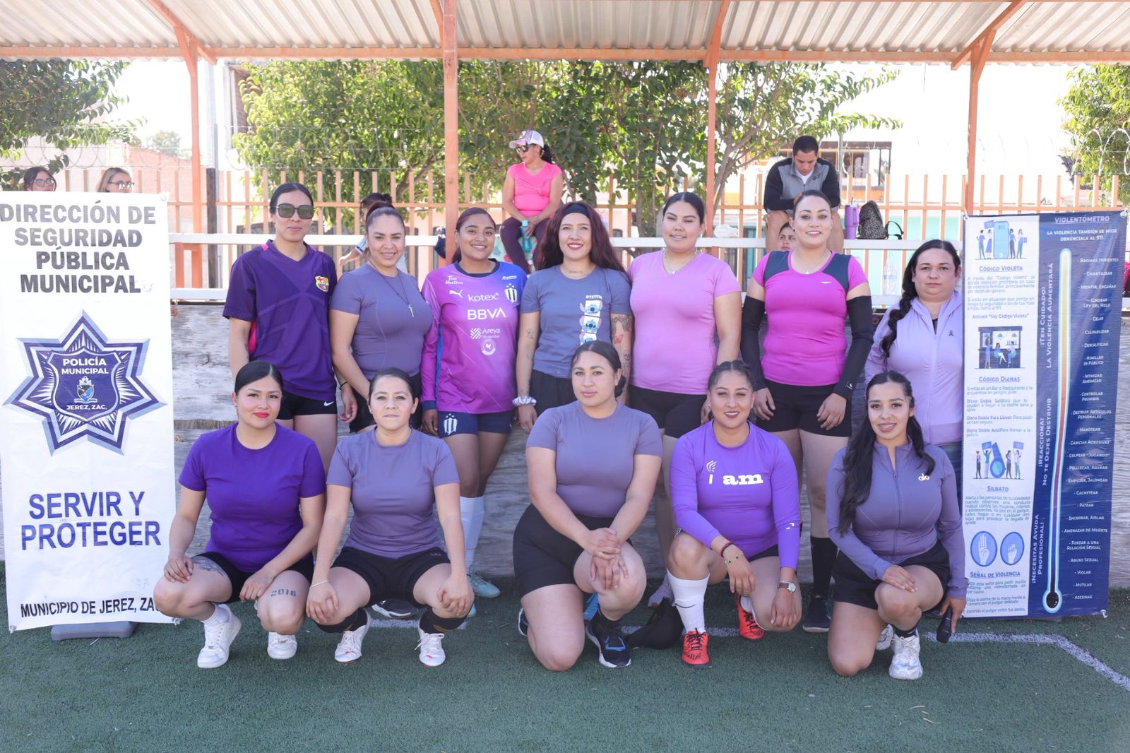 *Jerez, Zac.–* El Gobierno Municipal de Jerez, encabezado por el presidente municipal Rodrigo Ureño Bañuelos, a través del área de Prevención del Delito de la Dirección de Seguridad Pública Municipal, llevó a cabo el encuentro deportivo de fútbol amistoso denominado “Cancha Violeta”, como parte de las actividades conmemorativas del Día Internacional de la Mujer.