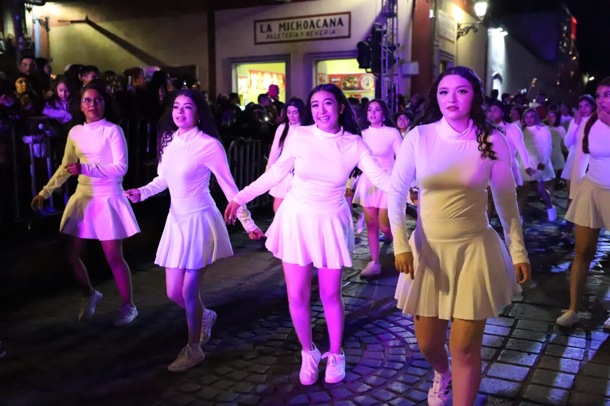 Los grupos de baile, vestidos con trajes brillantes, elaborados, llenos de luces, brillos y color, inundaron las calles con ritmos vibrantes.