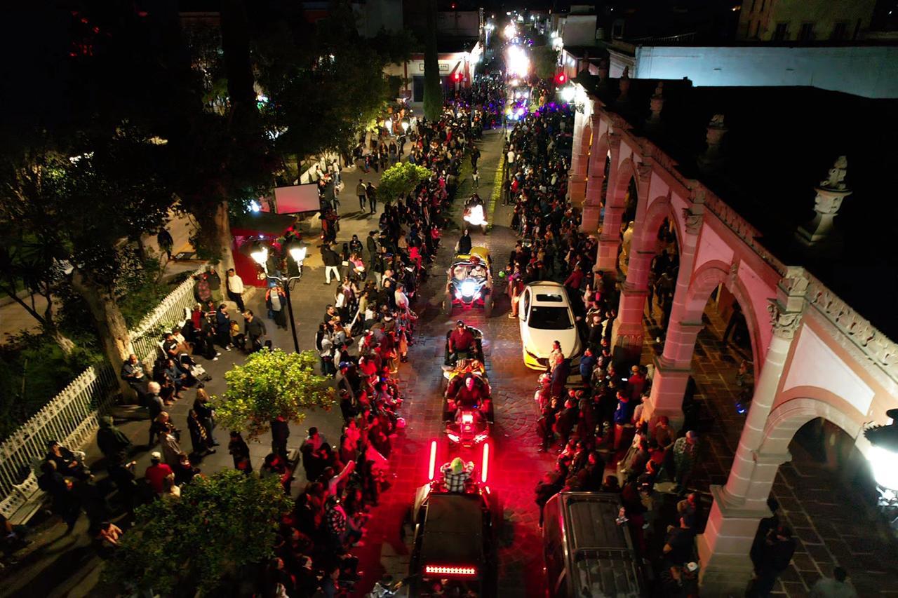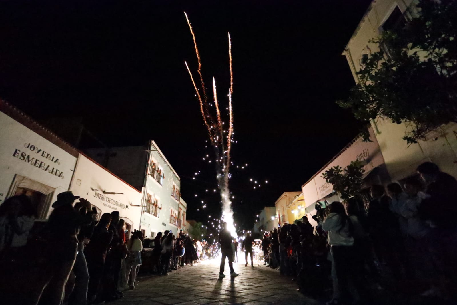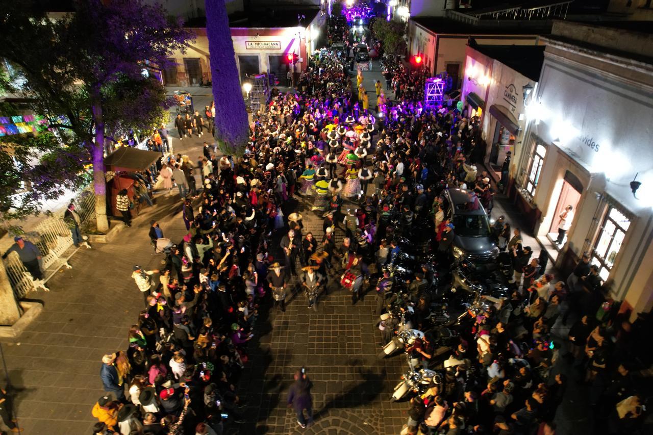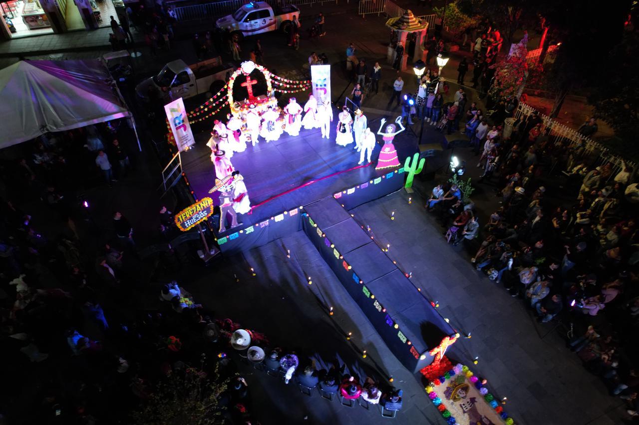 El Alcalde y su familia, disfrazados de calaveras con trajes típicos mexicanos, repartieron «el muerto» a niñas y niños, en compañía de la Orquesta Sinfónica Juvenil de Jerez. Bajo un cielo iluminado por la pirotecnia, el esperado desfile comenzó, con cientos de personas a lo largo de las calles, donde catrinas a pie y a caballo, el COBAEG, el CETIS 114, el SIMAPAJ, Protección Civil y Bomberos, Servicios Públicos, Gorilaz y el Turibus con la participación del DJ Luis Dena, formaron parte del espectáculo, junto a grupos de baile.