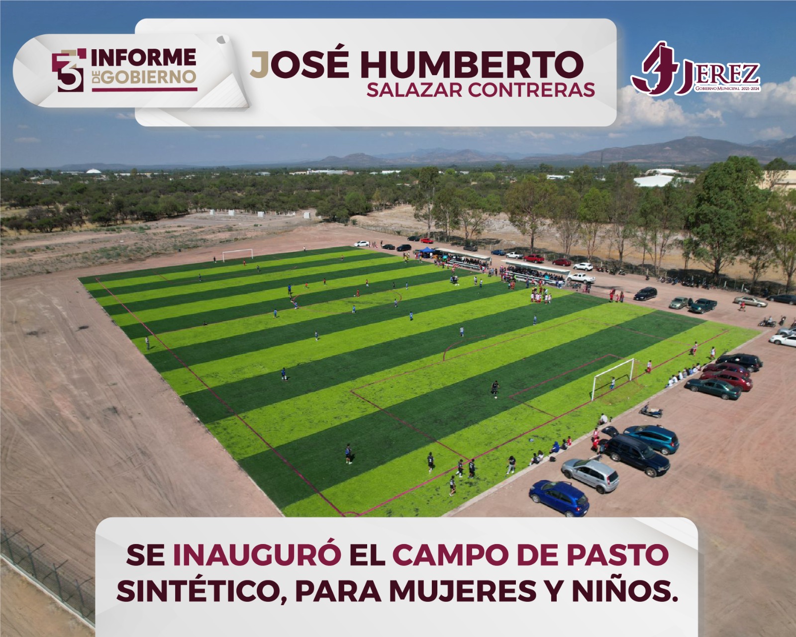 La Administración Municipal 2021-2024 refrendó su compromiso con el desarrollo deportivo con la inversión de recurso propio de más de 3 millones de pesos en la creación del Complejo Deportivo Sur, en el cual se realizó una cancha de fútbol con pasto sintético, para que las mujeres y los niños contaran con un espacio digno e inclusivo para sus actividades.