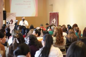 Esto durante la conferencia Mujeres Constructoras de Paz, que organizó el Instituto de la Mujer Jerezana, buscando promover la resolución de conflictos a través de valores como la justicia, libertad, equidad, solidaridad, tolerancia y respeto a la dignidad humana, evento coordinado por el Instituto de la Mujer Jerezana (INMUJE), en el que un considerable número de mujeres fueron partícipes de la conferencia impartida por el ponente Osvaldo Álvarez Crespo.