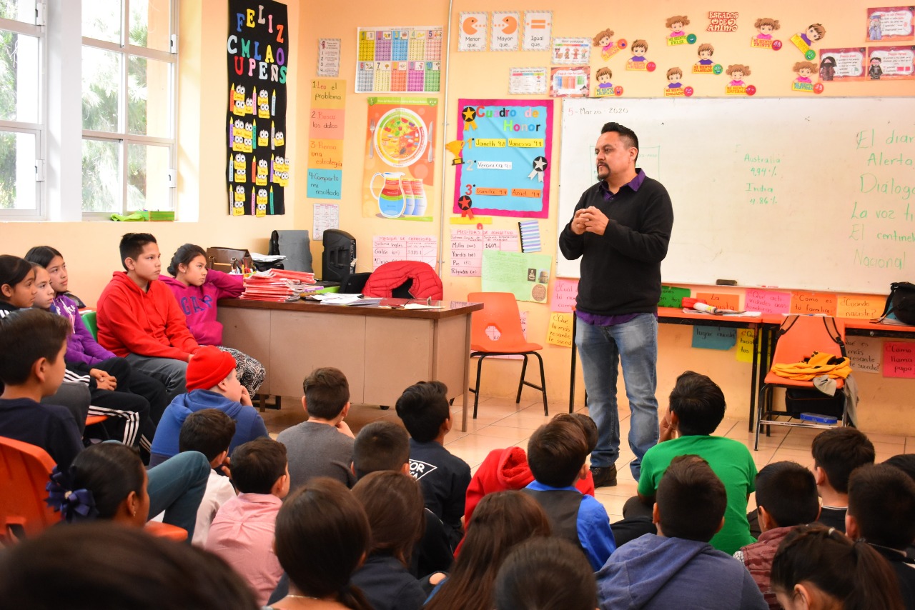 A la Primaria Ramón López Velarde llegó la Caravana Cultura Escolar para fomentar la lectoescritura de manera divertida entre 124 alumnos de tercer, quinto y sexto grado.