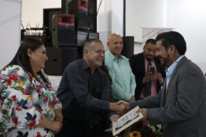En el evento, el presidente municipal entregó reconocimientos a un grupo de profesionales de la educación que cumplen 30 y 40 años de servicio. Entre ellos se encontraban Silverio Juárez Sánchez, Enrique Murillo Quiñones, Carlos López García y Consuelo Delgado Moreno, quienes cumplieron tres décadas en el aula, y Adolfo Carrillo Bermúdez, quien cumplió 40 años en el servicio docente.