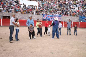 La directora del Sistema, Jessica Cuevas Cuevas, acompañada por el empresario de Lomos Pandos, Dagoberto de la Cruz, invitó a los presentes a pasar una tarde amena, con el nutrido programa y el protagonismo de vaqueros profesionales del estado, Aguascalientes, Coahuila y Jalisco.